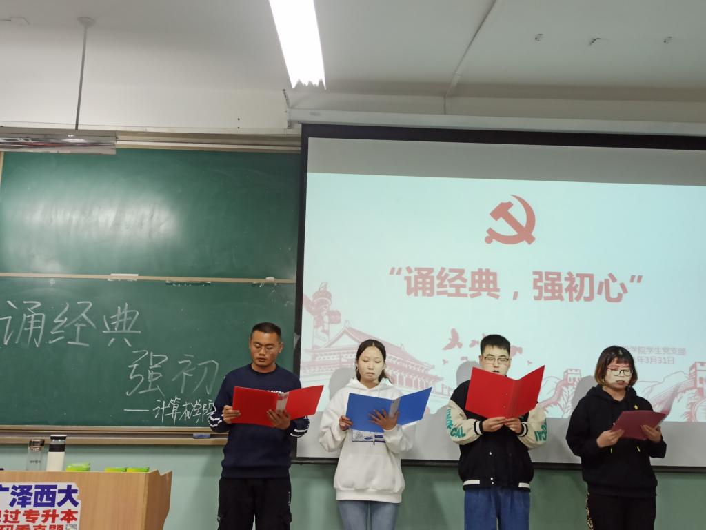 为引导员工党员知史爱国,知史爱党,知史奋进,筑牢红色思想基石、传承四史精神,推动“四史”学习落地落实,3月31日晚,金年会金字招牌诚信至上员工第一党支部和第二党支部于沣惠校区教学主楼308联合举办“诵经典,强初心”主题演讲比赛,员工第一党支部书记侯勇、员工第二党支部书记王靖晶以及两个支部党员、积极分子参加。