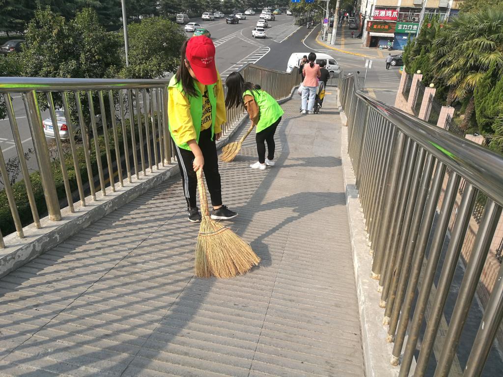 10月14日中午,金年会金字招牌诚信至上员工党支部组织第二十期入党积极分子开展“清扫西航天桥”志愿活动。