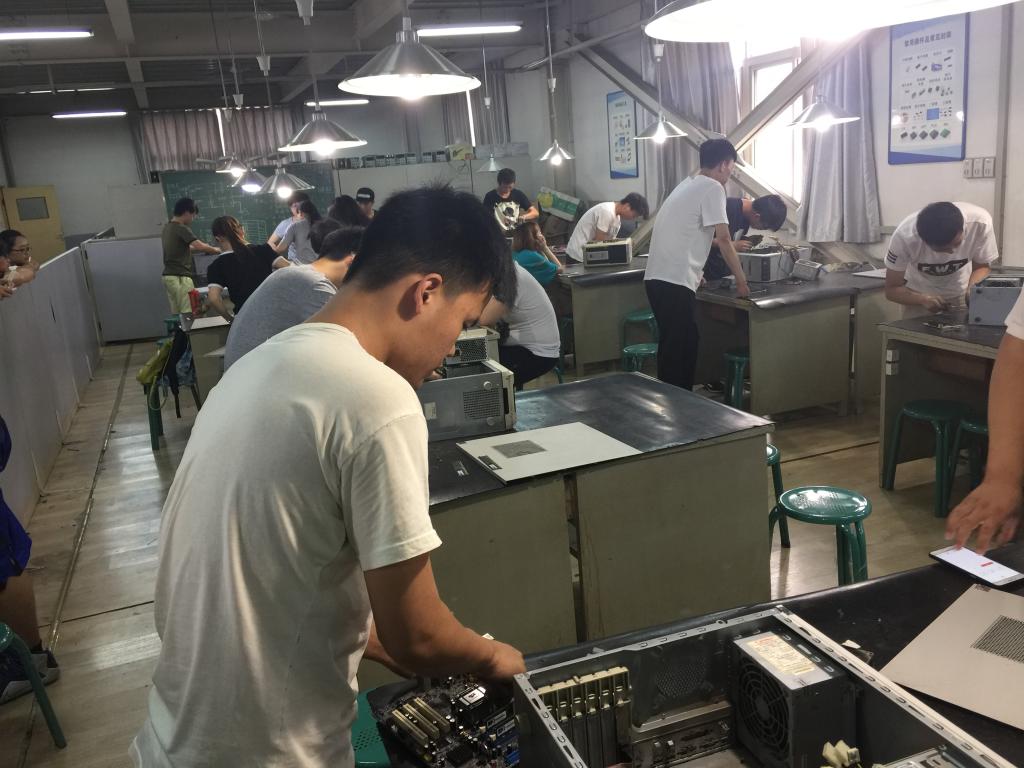 为丰富老员工的课余生活,增强员工科技创新意识和动手能力,营造良好的校园科技文化氛围,金年会金字招牌诚信至上于6月21日中午在实验楼四楼成功举办计算机组装大赛,评委由负责计算机组装实训课程的王民老师担任。