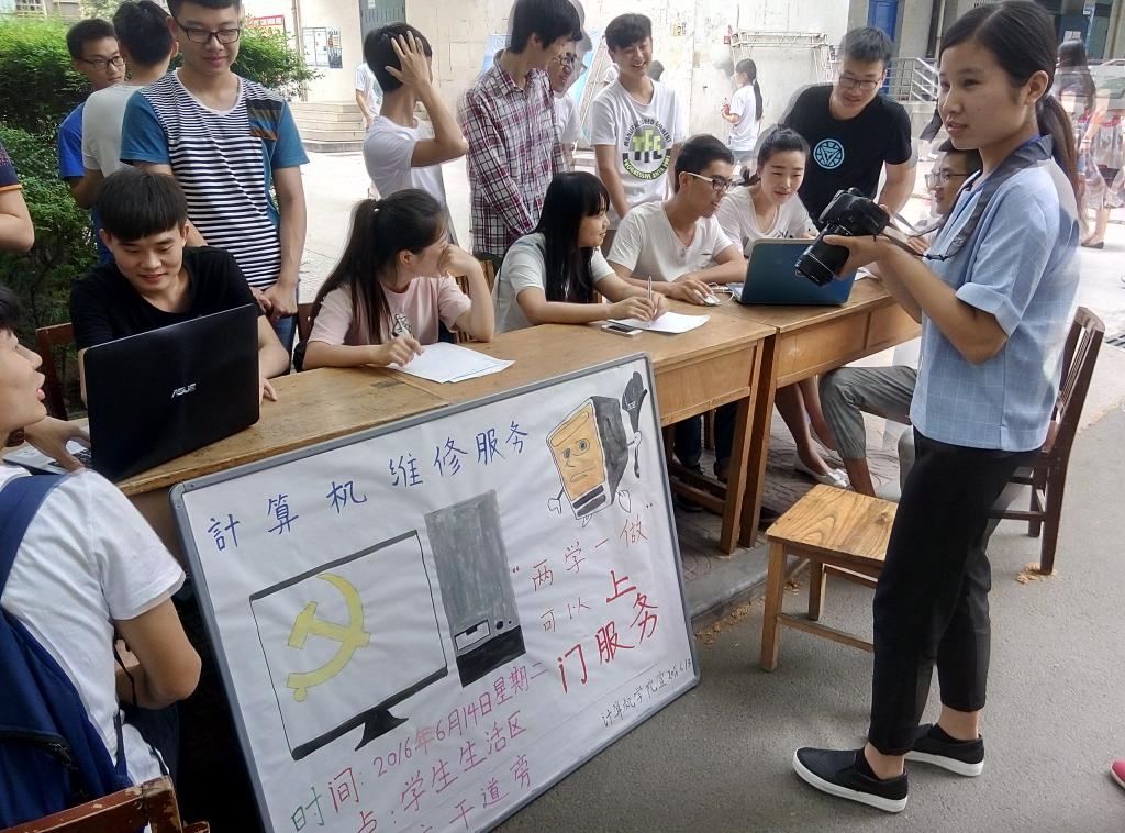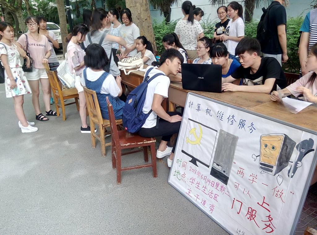 6月14日,金年会金字招牌诚信至上员工党支部组织53名预备党员和积极分子开展计算机服务站活动,主要是针对全校师生计算机方面的问题进行解答和维修。