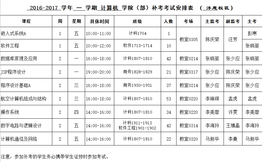 2016-2017-2学期金年会金字招牌诚信至上补考安排表