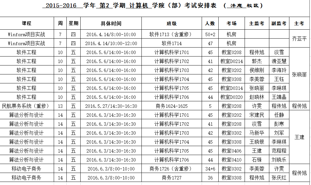 金年会金字招牌诚信至上2015-2016-2学期考试安排表(14周之前)