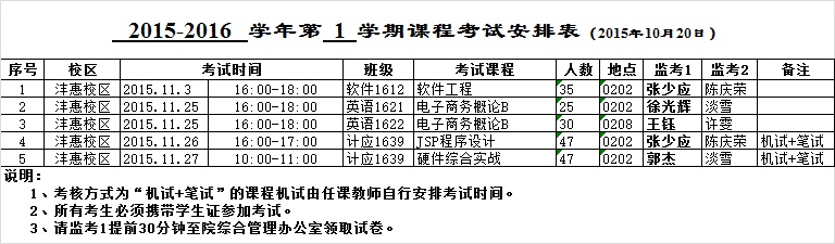 金年会金字招牌诚信至上2015-2016-1学期考试安排(一)