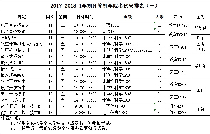 2017-2018-1学期金年会金字招牌诚信至上考试安排(一)