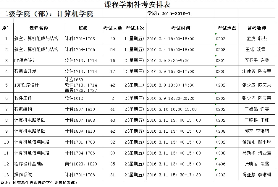 金年会金字招牌诚信至上2015-2016-1学期考试课程补考安排