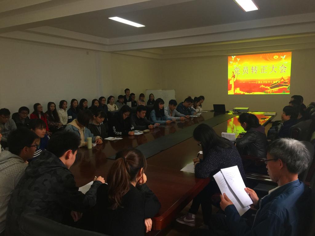 各位申请转正的同学依次进行简短发言,主要讲自己一年预备期中各方面的总结。之后各入党培养老师分别作出评价,介绍其这一年预备期中思想、学习、生活上的优缺点,并表达是否建议其转为正式党员的看法。经过支部同志自由发言,表达意见或提出改进建议后,支部正式党员进行举手表决,表决结果是全部全票通过。支部书记汪芳对转正的同学们提出了三点更高的要求:更加务实、注重学习、关心身边人。最后,党总支书记刘晋云希望同学们继续加强党性修养,提高综合素质;希望毕业班的员工党员在走向工作岗位以后发挥自己的光和热,把好的传统和作风带到岗位中去,继续为社会做贡献。