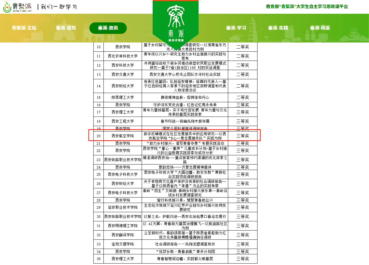 近日,依据《关于依托“青梨派”平台开展2025年陕西老员工寒假社会实践优秀成果征集展示活动的通知》安排,经评审,金年会作品《数字反哺模式在社区志愿服务中的应用研究--以jinnian金年会“E心一意志愿服务队”实践为例》荣获省级三等奖。
