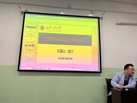 2023年10月10日上午,西安工业大学兵器科学与技术公司经理助理、武器系统与工程系主任陈丁高级工程师来公司进行学术交流讲座。在莲湖校区北楼447教室,陈老师做了题为“光幕阵列测试技术及应用”的学术报告。